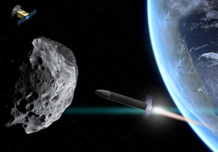 引力牵引器:派遣一个航天器在小行星旁长期飞行,利用两者间的微弱引力,缓慢“拖拽”小行星改变轨道。